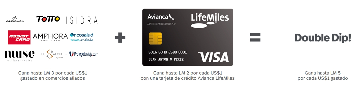 • Gana hasta LM2 por cada US$1 y hasta LM8,000 de bono de bienvenida con una tarjeta de crédito Avianca LifeMiles